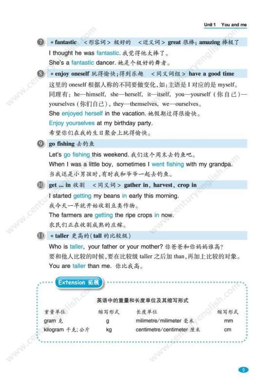 My mini-dictionary 小词典 —— 对单元词汇作详细的用法说明。这些词都很重要呢。