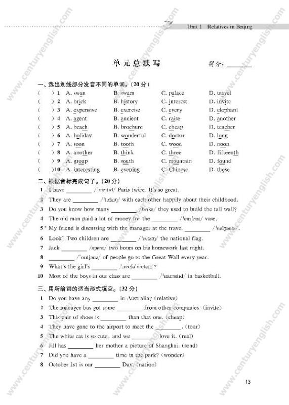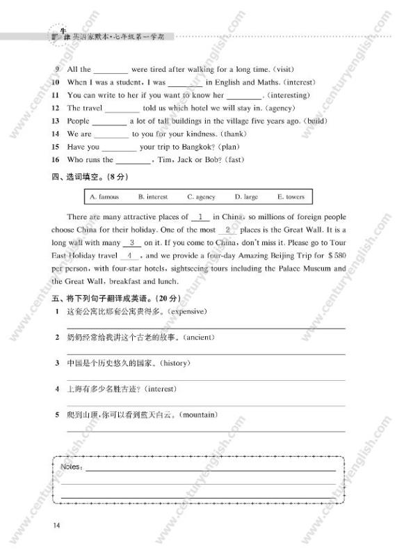 各个单元的家默练习部分包含单词与词组默写、词汇活用练习(如选词填空、连词成句、首字母填空)等题型,供学生在学完教材各页内容之后进行词汇学习情况的自我检测;单元总默写部分则通过多种词汇活用练习对本单元中需要学生重点掌握的词汇进行综合考查,检测学生对本单元词汇的整体掌握情况。此外,在每个家默练习最后均设有“Notes”栏,可供有需要的学生记录错题或学习要点,进行针对性复习巩固。本书专门组织了上海市各区初中名校的优秀教师在他们日常实践的基础上参与编写,旨在通过精心设计与科学编排,来帮助大家获得英语词汇学习的成功。全书主要特色如下: