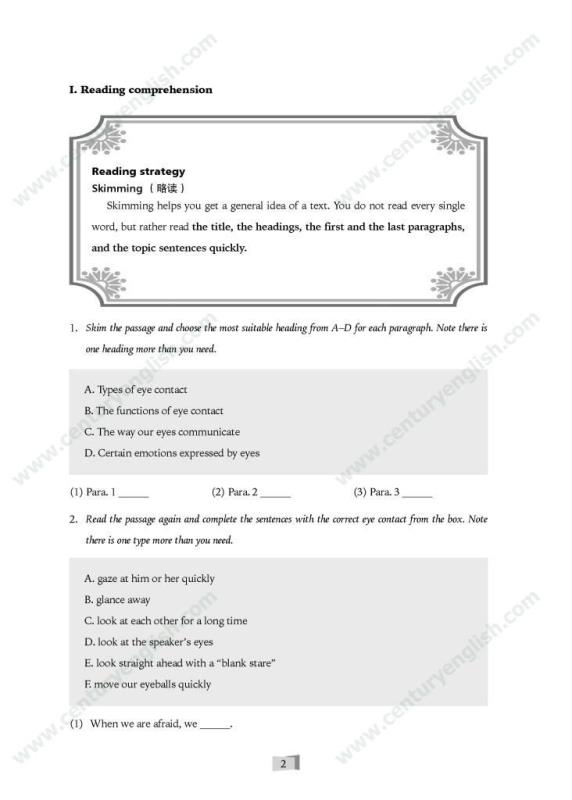 实体书设置Reading strategy、Word bank、Proverbs and sayings等小板块,帮助学生掌握阅读策略、扩充主题词汇、增强英语语感;每个单元后写作任务帮助学生在阅读输入的基础上完成写作输出,达到以读促写的目的。“网络题库”则通过师生互动和学生自主学习,帮助学生扩大阅读量、运用阅读策略、提高阅读速度和能力。