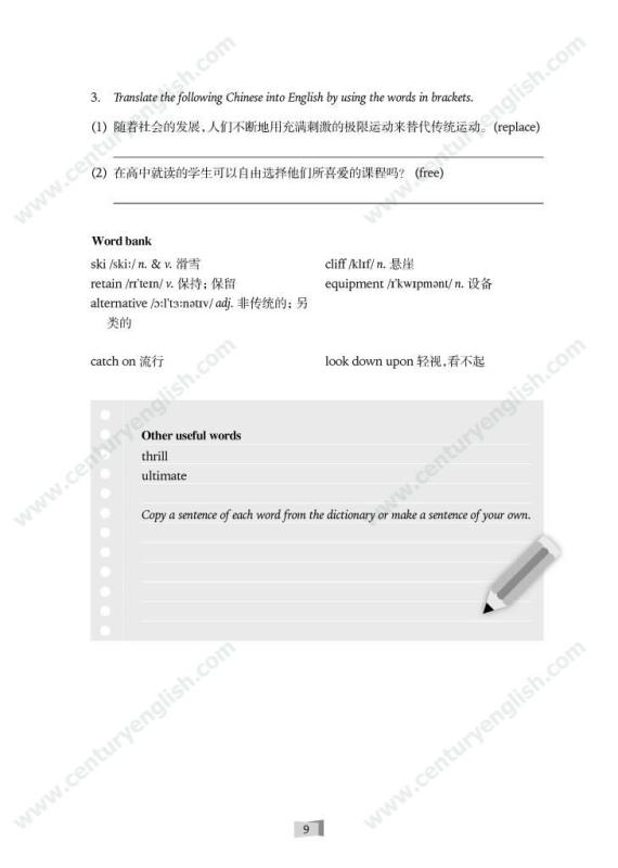 实体书沿袭高一两册的体例,增加了阅读语篇和写作的难度。同时考虑到2017年高考改革的方向,在阅读中新增了撰写Summary的题型。