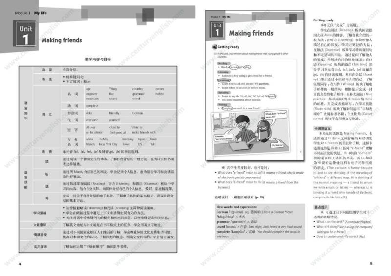 教师用书旨在向教师介绍教材的编写意图,给予适当的教学指导,补充各种教学活动,帮助教师组织课堂教学。教师应根据自己的教学风格和学生的水平与需求积极创新,创造性地使用教材。