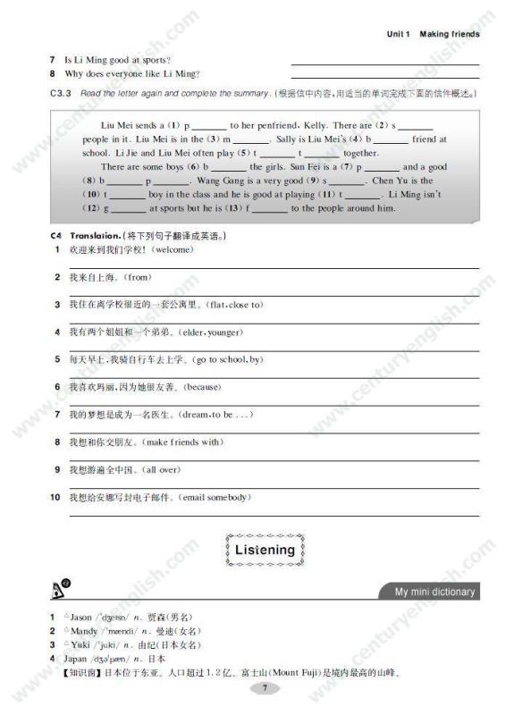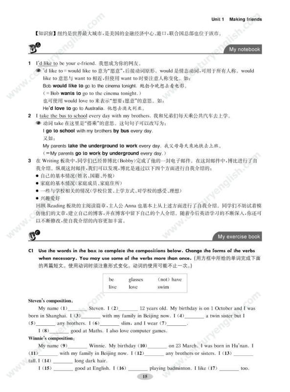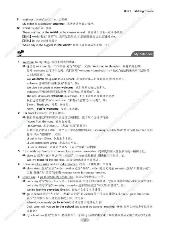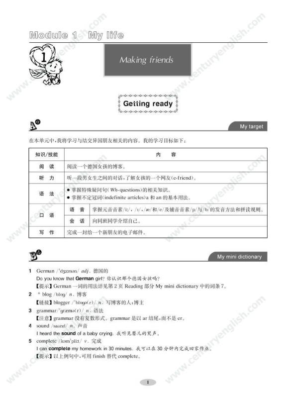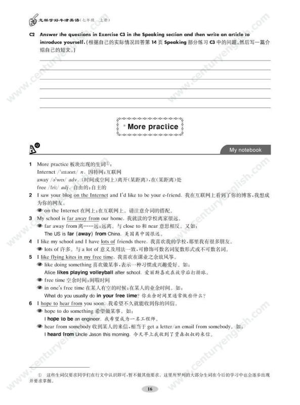 本书是与《英语》(沪教牛津版)配套的学习辅助材料。本书按Getting ready, Reading, Listening, Grammar, Speaking, Writing, More practice, Study skills, Culture corner等板块展开讲解,并提供针对性的练习。每个板块大致包含以下三大栏目:1.“My minidictionary”栏目讲解课本中的重点生词 ;2.“My notebook”栏目讲解课本中的词汇用法、句型结构和语言现象,提供课文的参考译文,归纳听力技巧,小结读音规则,总结口语技巧,给出写作指导等;3.“My exercise book”栏目准备了与课本要点相匹配的练习,供学生操练和巩固语言知识与技能。此外,本书对课本中的Project板块作了补充讲解。另外,本书随书附赠一套测试卷,可以帮助学生及时检测自己的阶段性学习成果。