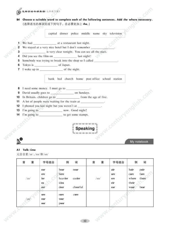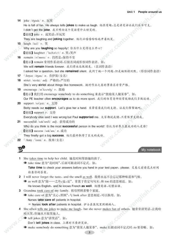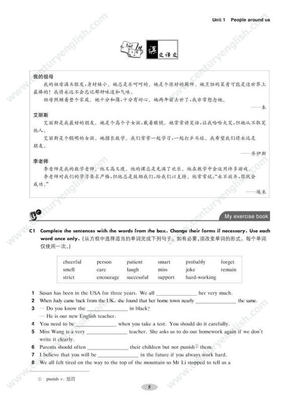 本书是与《英语》(沪教牛津版)配套的学习辅助材料。本书按Getting ready, Reading, Listening, Grammar, Speaking, Writing, More practice, Study skills, Culture corner等板块展开讲解,并提供针对性的练习。每个板块大致包含以下三大栏目:1.“My minidictionary”栏目讲解课本中的重点生词 ;2.“My notebook”栏目讲解课本中的词汇用法、句型结构和语言现象,提供课文的参考译文,归纳听力技巧,小结读音规则,总结口语技巧,给出写作指导等;3.“My exercise book”栏目准备了与课本要点相匹配的练习,供学生操练和巩固语言知识与技能。此外,本书对课本中的Project板块作了补充讲解。另外,本书随书附赠一套测试卷,可以帮助学生及时检测自己的阶段性学习成果。