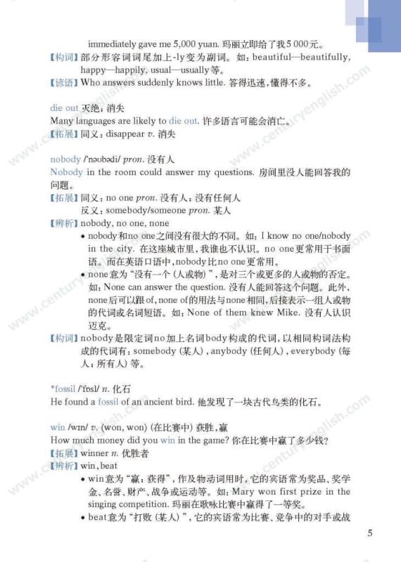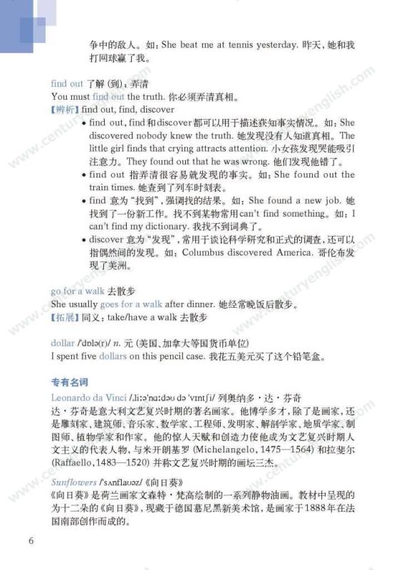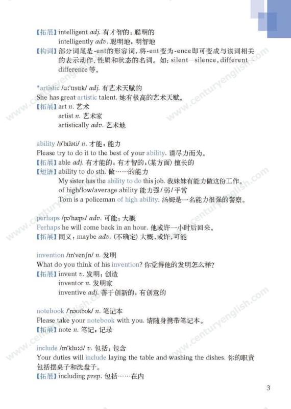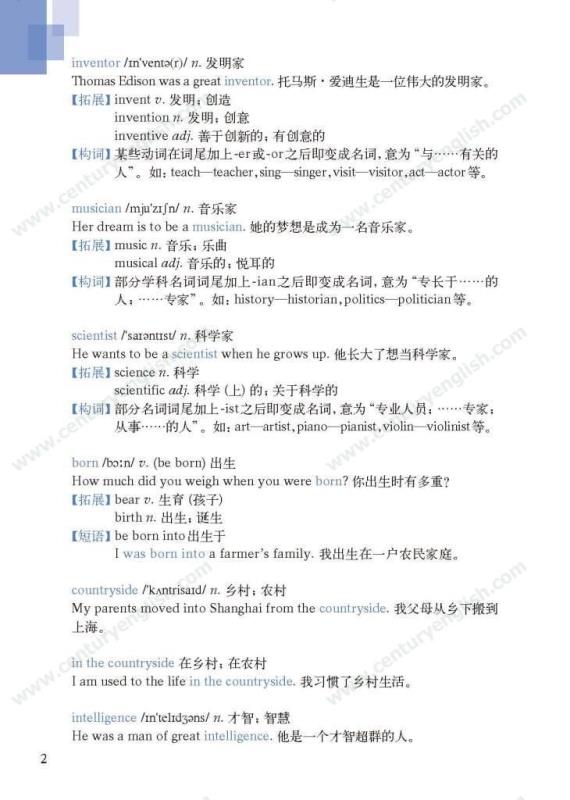 《牛津英语词汇学习手册》根据《英语》中出现的词汇编写而成。其主要特点是:1.详尽收录了《英语》中出现的各单元核心词汇与拓展词汇。词条按照单元中出现的顺序编排,方便学生进行同步学习。2. 所有词条均配有标准的国际音标、词性、中文释义、例句。大多数词条配有拓展、短语、辨析、构词、提示、谚语等等,旨在帮助学生举一反三、抓住重点和难点。部分词条配有文化小贴士,提供与该词有关的文化背景知识,有利于学生学习地道的语言。3. 提供与单词配套的强化练习,涵盖手册中出现的重要词汇,形式上与各地中考题型相近,有首字母填空、词性转换、补全对话、补全短文等。4. 书后还附有索引表,便于按字母顺序查询相关单词。