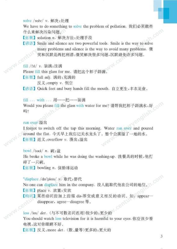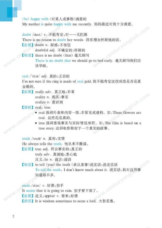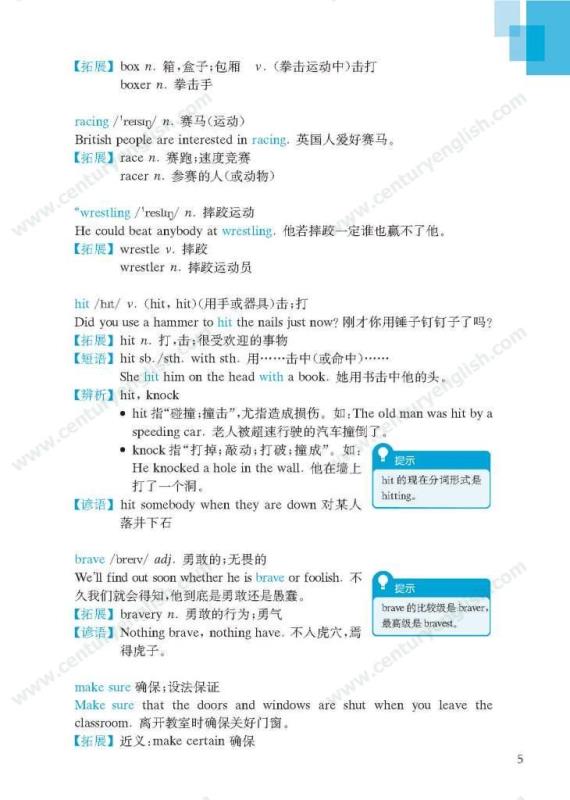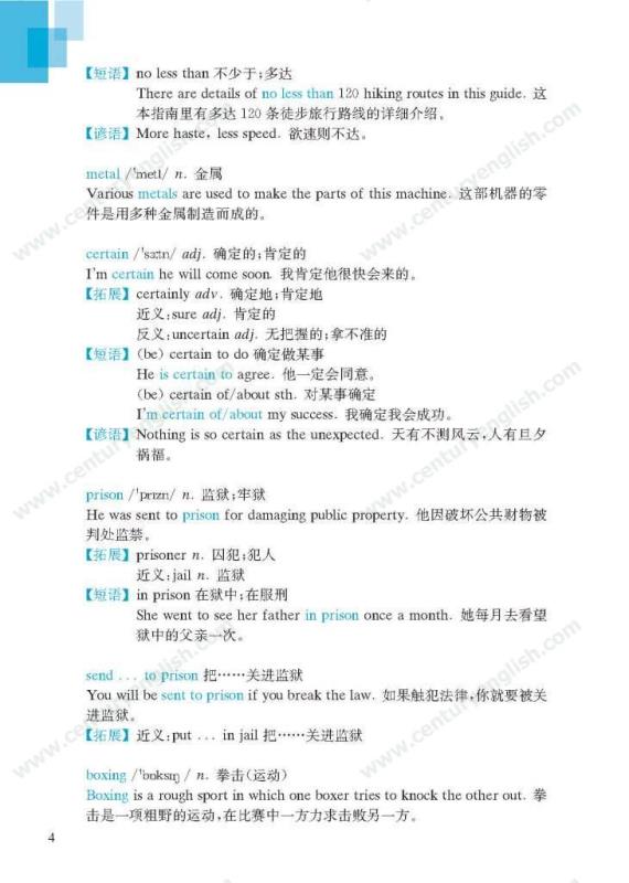 《牛津英语词汇学习手册》根据《英语》中出现的词汇编写而成。其主要特点是:1.详尽收录了《英语》中出现的各单元核心词汇与拓展词汇。词条按照单元中出现的顺序编排,方便学生进行同步学习。2. 所有词条均配有标准的国际音标、词性、中文释义、例句。大多数词条配有拓展、短语、辨析、构词、提示、谚语等等,旨在帮助学生举一反三、抓住重点和难点。部分词条配有文化小贴士,提供与该词有关的文化背景知识,有利于学生学习地道的语言。3. 提供与单词配套的强化练习,涵盖手册中出现的重要词汇,形式上与各地中考题型相近,有首字母填空、词性转换、补全对话、补全短文等。4. 书后还附有索引表,便于按字母顺序查询相关单词。