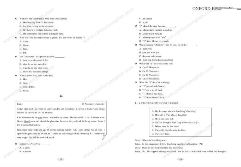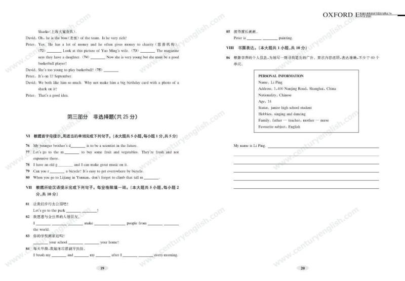 本套书配套《英语》(沪教牛津版)编写。讲解和试题均着眼于基础知识,落实交际能力,有利于学生巩固教材所学知识,提高听说读写能力。在“学习目标”板块罗列了各单元重点的词汇、短语、语言点和语法知识,方便学生掌握每单元的学习重点;各模块测试题和期中、期末试卷紧扣各地中考题型,能够切实帮助学生提高自身的英语水平和成绩。