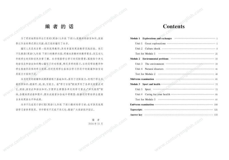 本套书紧贴课本,帮助学生抓住单元重点。测试卷紧扣中考题型,有助于学生备考。各单元“学习目标”和“单元测试”以及各模块卷可以单独撕下作为练习或单元检测用。