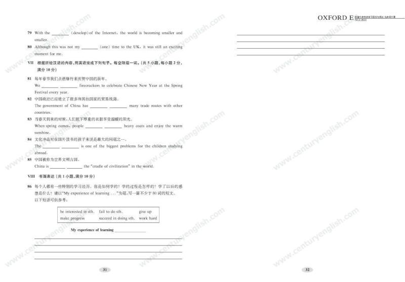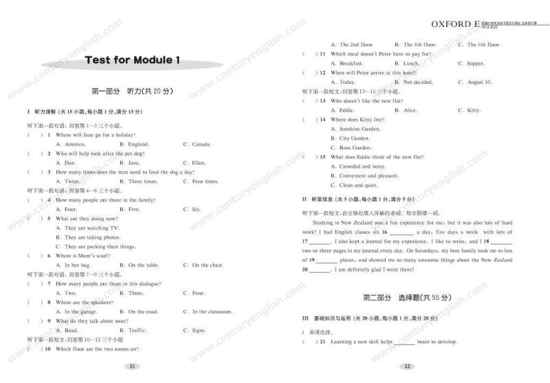 本套书配套《英语》(沪教牛津版)编写。讲解和试题均着眼于基础知识,落实交际能力,有利于学生巩固教材所学知识,提高听说读写能力。在“学习目标”板块罗列了各单元重点的词汇、短语、语言点和语法知识,方便学生掌握每单元的学习重点;各模块测试题和期中、期末试卷紧扣各地中考题型,能够切实帮助学生提高自身的英语水平和成绩。
