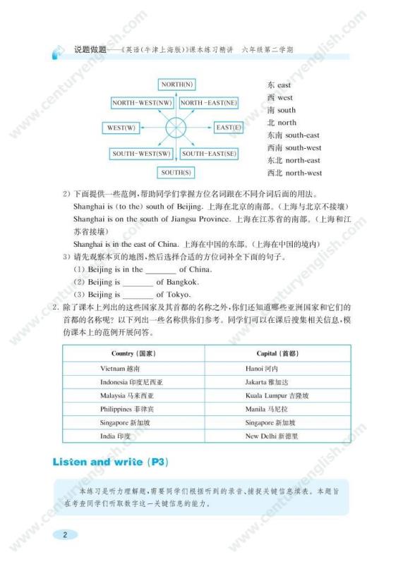 本套丛书与《英语(牛津上海版)》初中段教材配套,用“说题”的方式同步提供各册课本上所有练习的解题思路,揭示课文练习的考查目的,帮助同学们“消化”课本知识,从而会做课本练习,并会用所学的知识和技巧解答同类的问题。此外,这套书中还附有一些拓展内容,帮助同学们拓宽视野,活学活用,提升大家的英语运用能力。