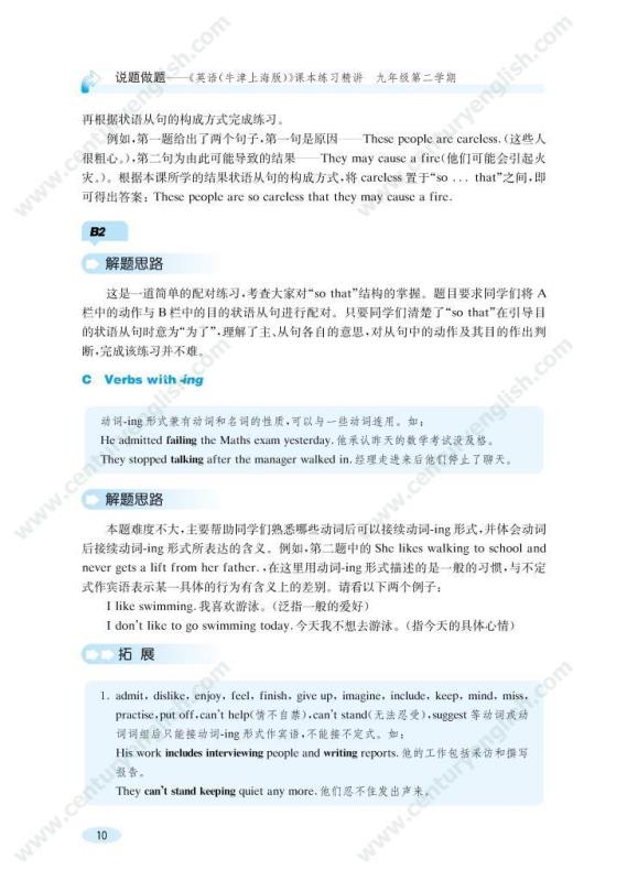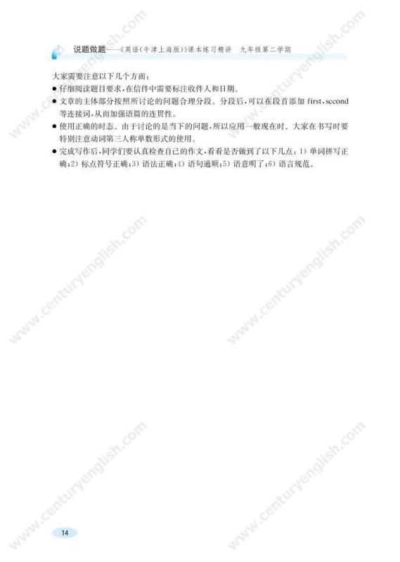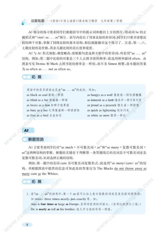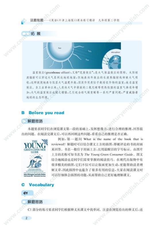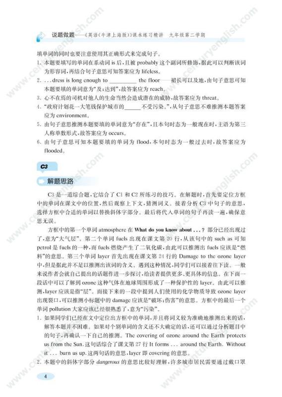 本套丛书与《英语(牛津上海版)》初中段教材配套,用“说题”的方式同步提供各册课本上所有练习的解题思路,揭示课文练习的考查目的,帮助同学们“消化”课本知识,从而会做课本练习,并会用所学的知识和技巧解答同类的问题。此外,这套书中还附有一些拓展内容,帮助同学们拓宽视野,活学活用,提升大家的英语运用能力。