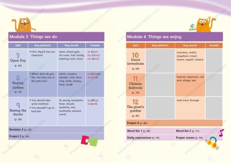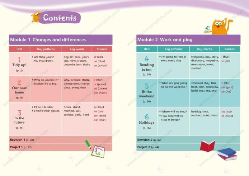 教材采用“模块建筑式(building-blocks approach)”编写体系。模块建筑的理论基础是学生的学习过程和学习能力是不断发展的,即学生已知的语言知识和已获得的语言技能将成为他们进一步开展语言学习的基础。本套教材以模块(Module)为单位组织教学内容,模块内的语言材料围绕一个主题展开;各模块包含三个单元(Unit),每个单元集中讨论该主题下的一个具体话题。教材各模块之间互相补充,互相配合,保证语言知识和语言技能螺旋式上升;同一模块主题在不同年级循环出现,保证教学内容复现和循环。