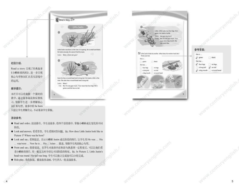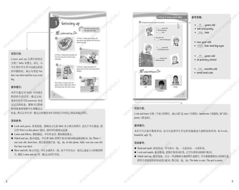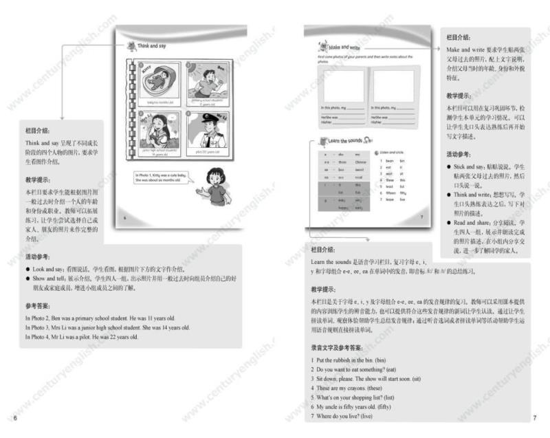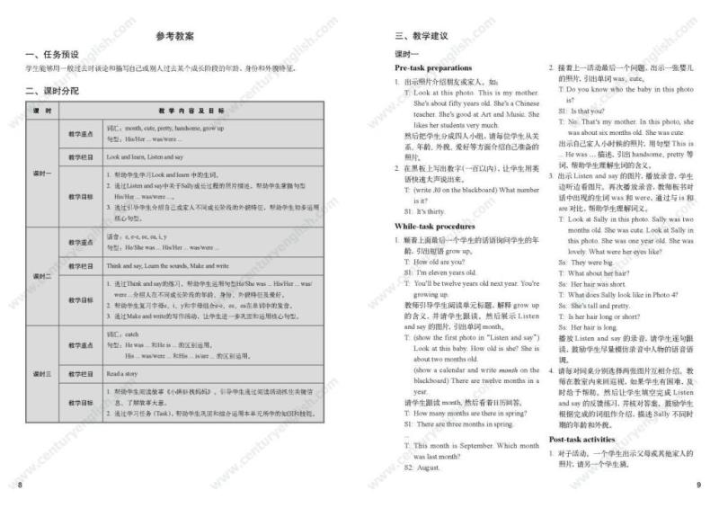 为了帮助教师建立单元整体教学的意识,《教师用书》以“书中书”的形式提供了所有栏目的栏目介绍、教学提示与活动参考。“栏目介绍”帮助教师明确栏目要求,准确理解栏目意图;“教学提示”提供了一些关于灵活处理教材的小贴士;“活动参考”针对每个栏目的材料本身提供了若干活动建议。《教师用书》还包括单元纵览和一份参考教案(含课时分配建议)。