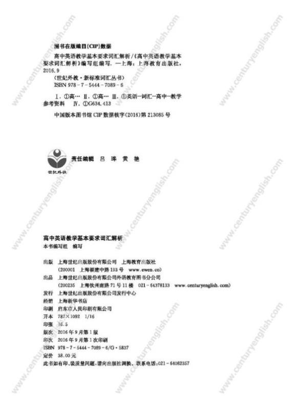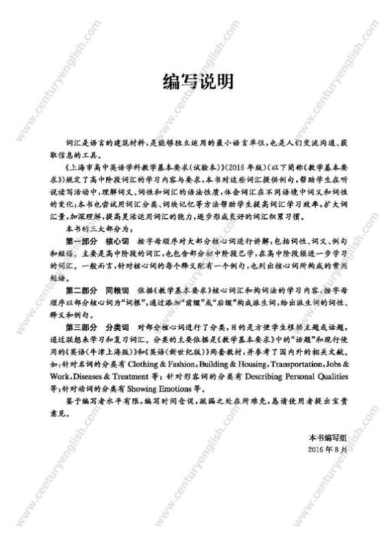* 基于《上海市高中英语学科教学基本要求(试验本)》词汇学习内容编写,紧扣高中词汇学习重点,具有高度权威性。