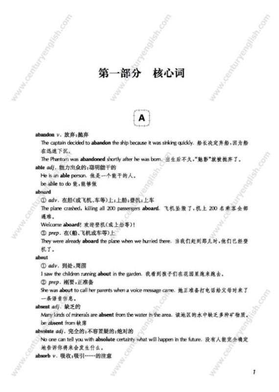 * 核心词汇精选例句,呈现词汇常见意义及典型用法;派生词及分类词归纳系统,高效解决词汇记忆难点。