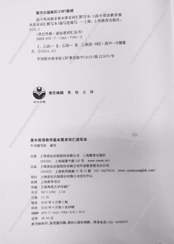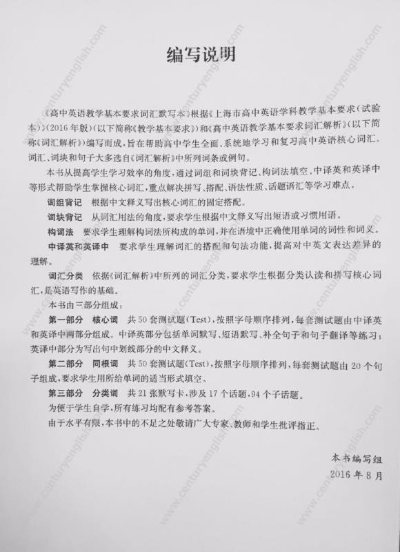 * 基于《上海市高中英语学科教学基本要求(试验本)》和《高中英语教学基本要求词汇解析》编写,利于学生系统地强化练习高中英语核心词汇。