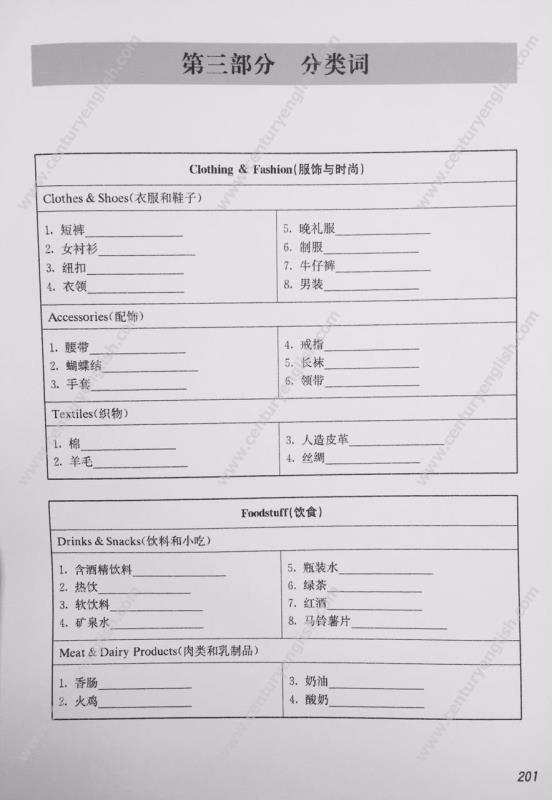 第三部分 分类词。共21张默写卡,涉及17个话题,94个子话题。