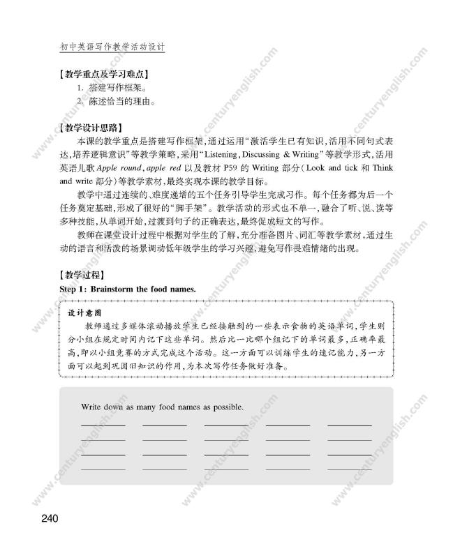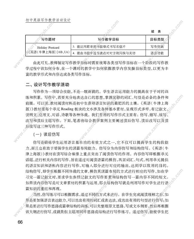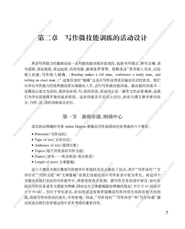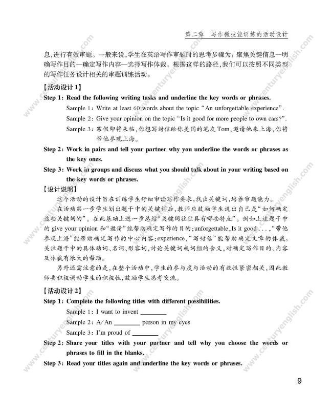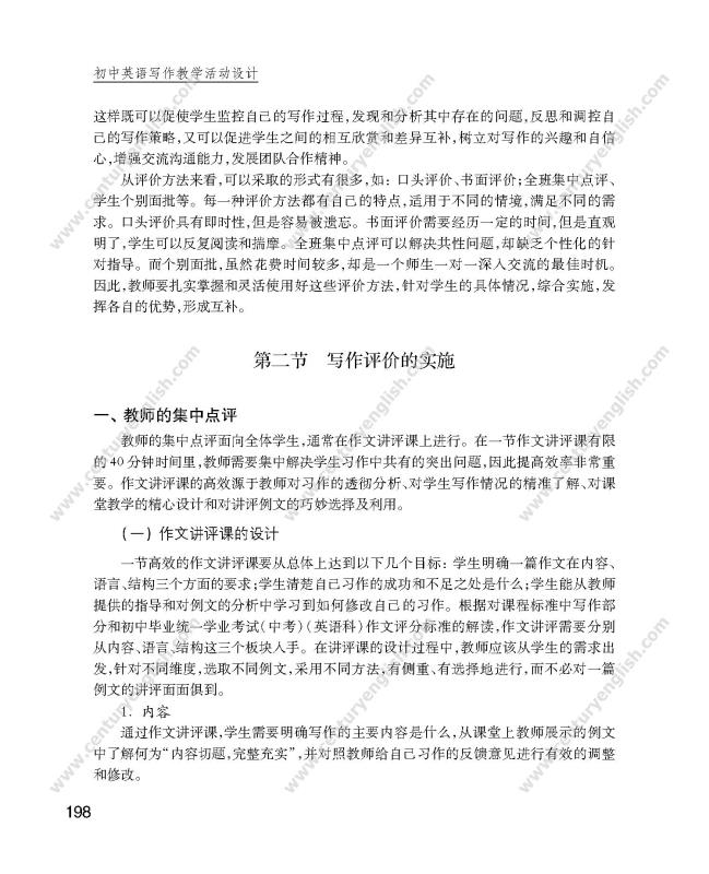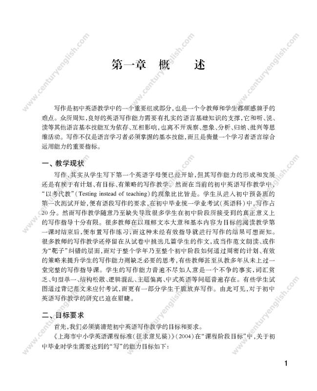 2. 在当前初中英语写作教学中,普遍存在写作教学缺乏系统性、教师缺少写作教学方法策略、教学研究中视写作为畏途、学生写作能力较差、畏难情绪多见等情况。本书将会为初中英语教师提供解决这些问题的全方案指导;