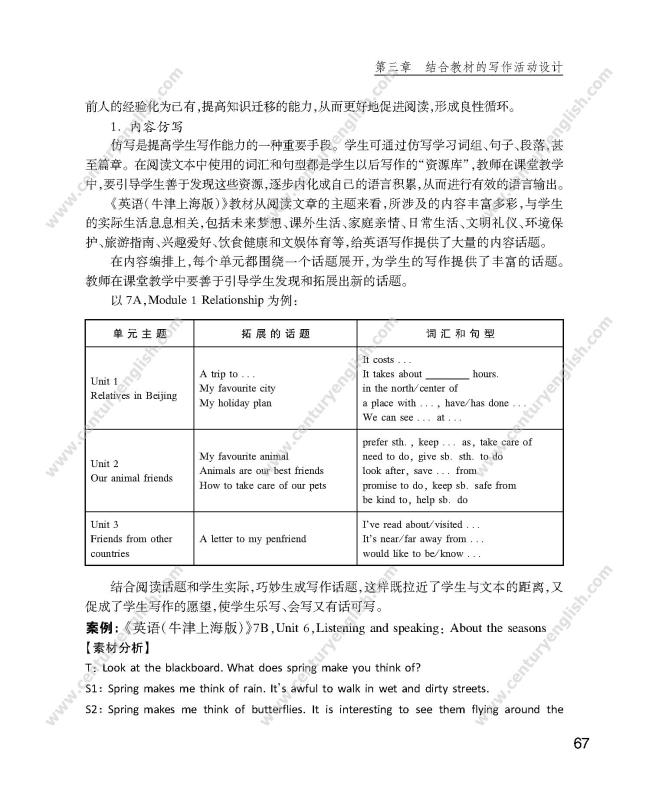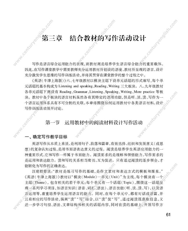 本书以现代语言教学理论为指导,以课程标准为依据,依托上海初中主教材《英语(牛津上海版)》,以“教学活动设计”为切入口,直面并切实解决当前初中英语写作教学中的关键性问题,能够切实改进初中英语写作教学,提高教师英语写作教学活动设计能力,最终提升初中学生的英语写作水平。