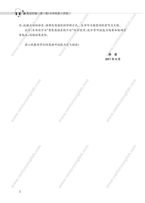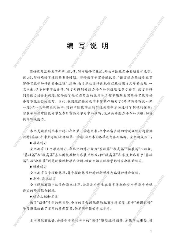 * 本书是对初中学生听说能力训练模式的一次有益探索,对于改善初中生重读写训练、轻听说训练的现状具有积极的意义,书中丰富多样的题型以及分层进阶训练能切实培养和提升学生的听说能力;