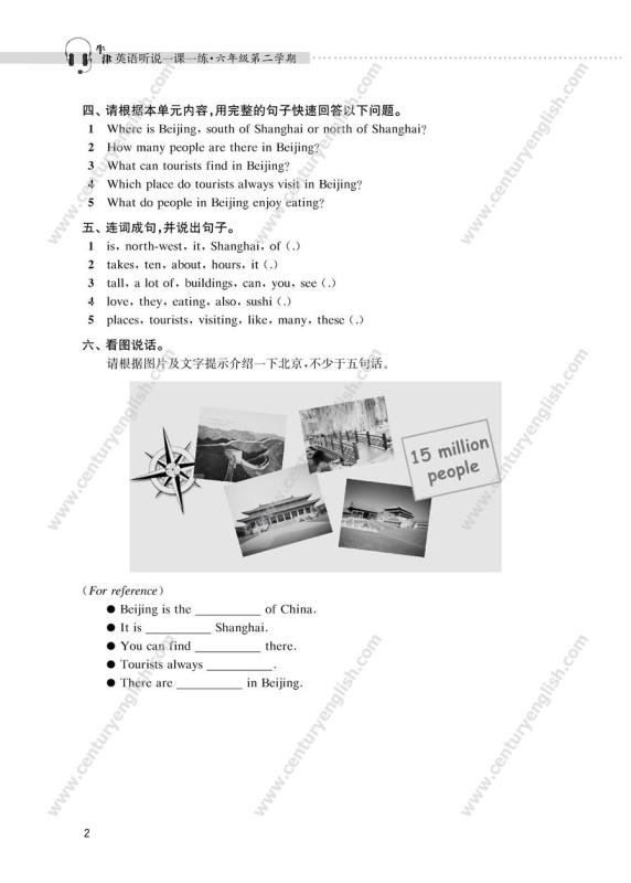 本书供使用《牛津(上海版)》教材的初中六年级学生使用,书中各单元与《牛津(上海版)》教材6B各单元内容一一对应。每个单元设3个听说练习,分别为基础篇、提高篇和拓展篇。根据课本每个模块后的More practice(选学部分)另设3个听说练习。另外设置期中、期末听说测试。本书将与上海朗鹰教育科技股份有限公司合作,借助其互联网平台对读者的听说能力作及时评价反馈。